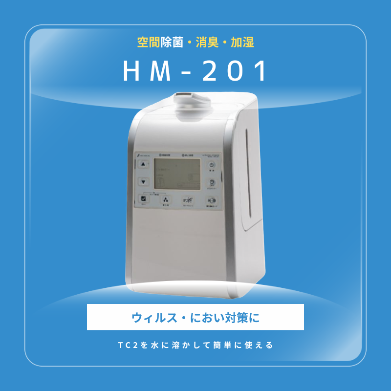 ・インフルエンザウイルスを不活性させることができ、超音波噴霧器「HM-201」と一緒にご使用いただくと空間除菌・加湿のW効果でインフルエンザ予防に抜群の効果を発揮します。