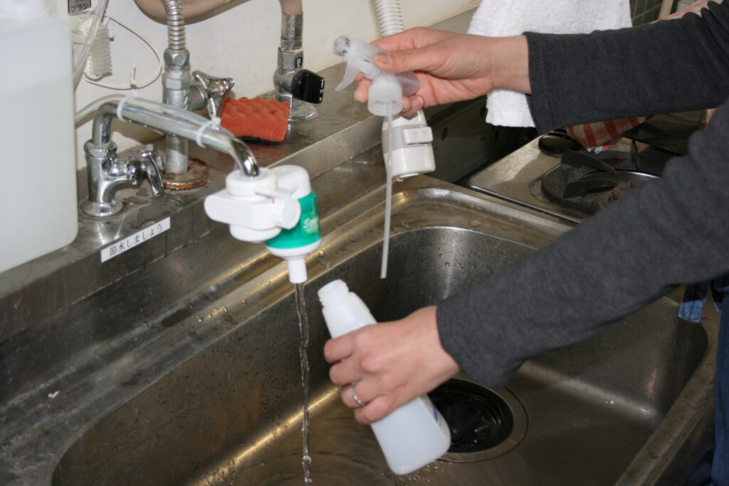 ステリ・アップは水に溶かすだけで強力な除菌力を発揮するため、食材・調理器具・テーブル・ドアノブ等の除菌、インフルエンザ・ノロウィルスの予防、空間除菌・消臭など、様々な用途にご使用いただいております。